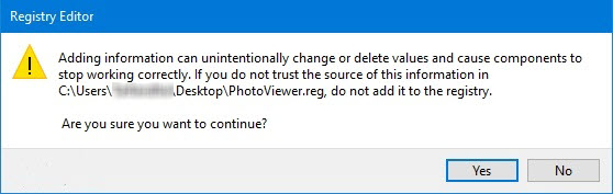 مرحله دوم: بر روی فایل دانلود شده (PhotoViewer.reg) دوبار کلیک کنید تا اجرا شود.