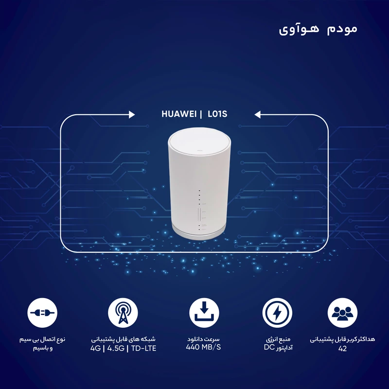مودم Speed Wi-Fi HOMEبه سفارش اپراتور موبایل ژاپن au در سال 2018 توسط شرکت هواوی طراحی و تولید شده است. این مودم با پشتیبانی از اینترنت نسل 4 ثابت (TD) ، موبایل (FD) و WiMAX2+ با سرعت دانلود حداکثر 440Mbps در رده تجهیزات شبکه CAT9 قرار دارد. این مودم که با نام اختصاری HWS32MWA شرکت هواوی و یا L01s شرکت au نیز شناخته می شود، با استفاده از تجمیع فرکانسی (Carrier Aggregation) از تجمیع چند کانال بطور همزمان برای دستیابی به پهنای باند بیشتر و ارتباط پایدارتر بهره می برد. این مودم با فریمور اورجینال آنلاک هواوی امکان تطبیق و آپدیت خودکار پروتکل های ارتباطی را داشته و کاربر می تواند بدون محدودیت از هر سیم کارتی (سایز نانو) که آنتن دهی بهتری در محل مورد استفاده دارد نظیر ایرانسل یا پیشگامان استفاده نماید. مودم دارای باند دوگانه Dual Band IEEE802.11ac/n (5G & 2.4GHz) است بنابراین با اتصال بهSSID 5G در ارتباط بی سیم بالاترین سرعت را بدون داشتن تاخیر و lag برای استریم آنلاین فیلم، بازی ها آنلاین، بازار سرمایه، ثبت نام دانشگاه و آزمون های آنلاین تجربه خواهید کرد. Speed Wi-Fi HOME با پشتیبانی همزمان از 40 کاربر وایرلس و دو کاربر با استفاده از پورتهای Gigabit LAN Ethernet تا 1200Mpbs داده را در هر ثانیه از طریق هر پورت منتقل کند. این مودم در منزل، محل کار و تعطیلات در کنار شماست. قیمت مناسب هر گیگ اینترنت TD و سرعت بالا تجربه جدیدی در استفاده از اینترنت را برای شما به ارمغان می آورد. توجه: در صورت نیاز به استفاده اینترنت TD-LTE پوشش آنتن دهی آن را قبل از خریداری در سایت ایرانسل یا سایر اپراتورها کنترل نمایید. در صورتی که پوشش TD-LTE در محل شما موجود نباشد، مودم به طور خودکار وارد باند FD-LTE (4G) می شود. همچنین در صورتیکه از سیم کارت ارائه دهندگان سرویس اینترنت متفرقه استفاده می نماید پیش از خرید از فرکانس کاری آن سیم کارت مطمن شوید.